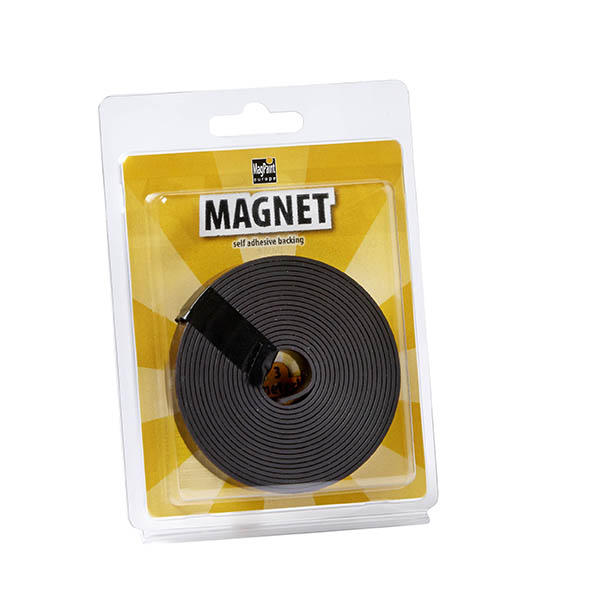 Samolepilni magnetni trak lahko uporabite za predmete manjših tež in s tem omogočite uporabo na vseh površinah, oprijemljivih za magnete. Trak lahko odrežete na poljubno dolžino.